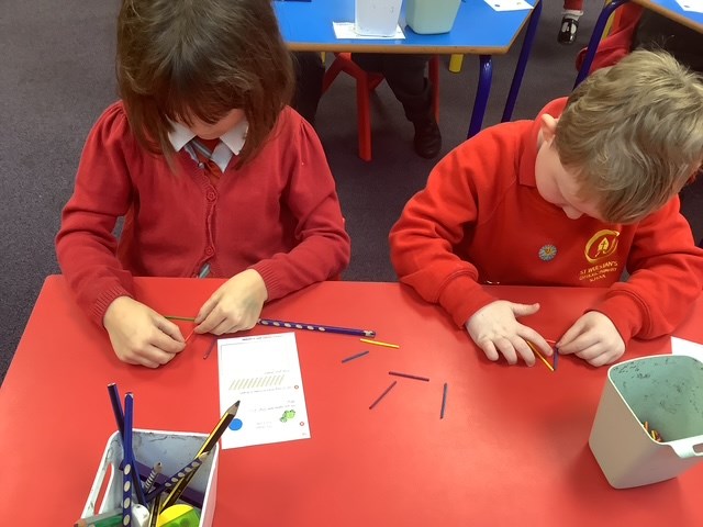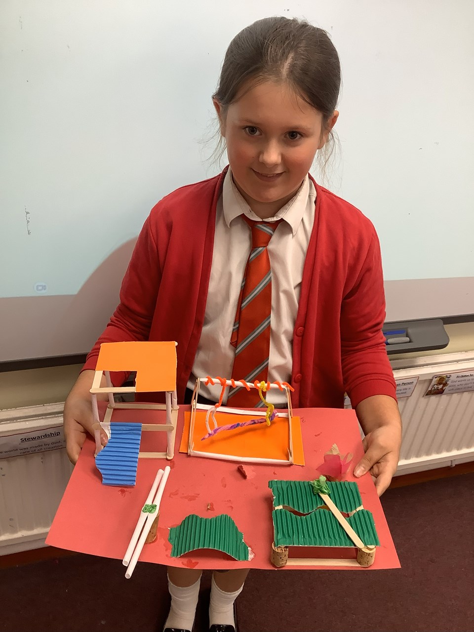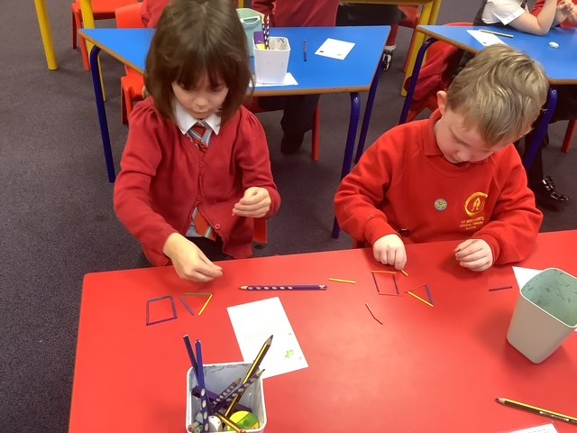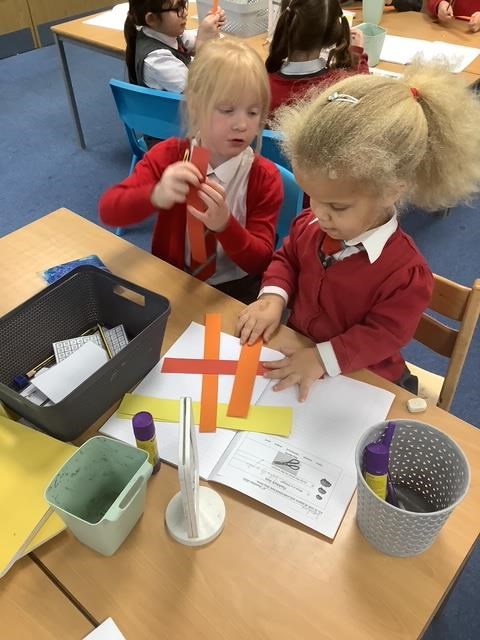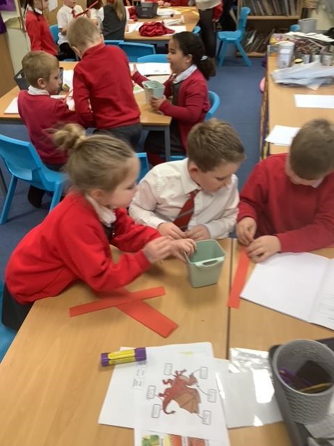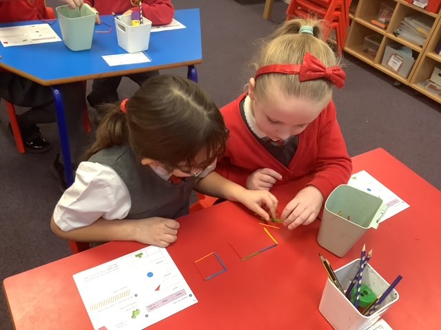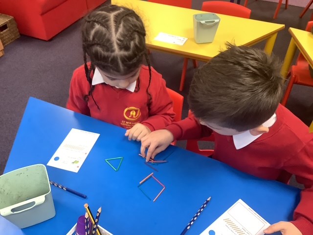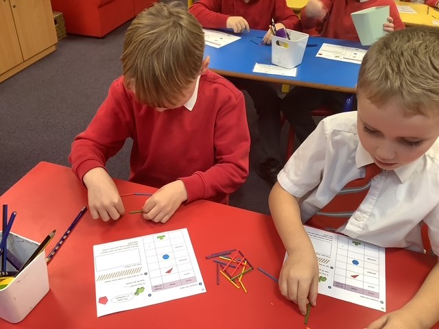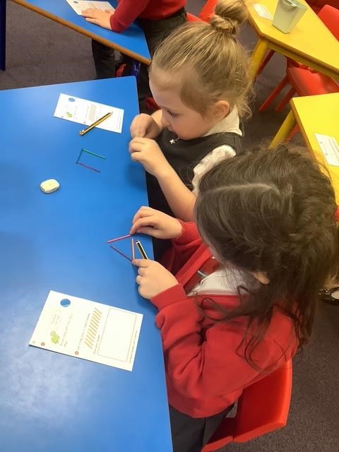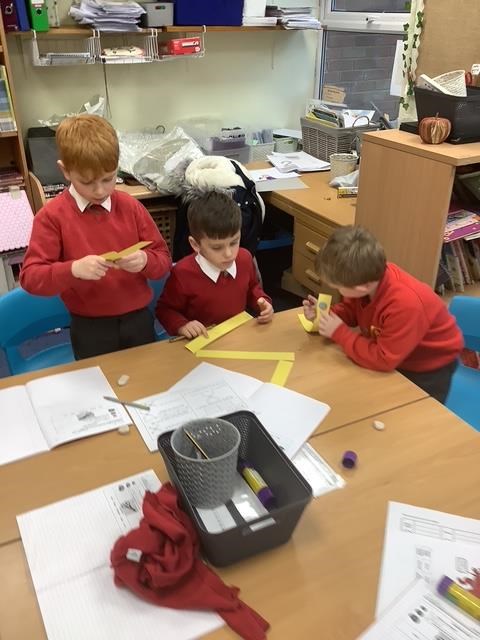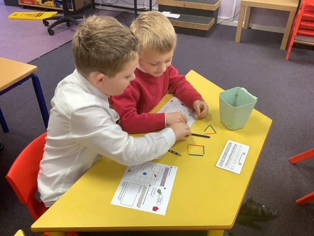 Year 1 and 2 have been learning about 2D and 3D shapes this week, learning their names and properties. The children enjoyed applying their knowledge by creating their own matchstick 2D shapes before trying to draw them. In DT, the class are developing their knowledge of mechanisms. They have learnt about pivots and levers and started to create their own linkages. The class learnt how to safely make holes in card and insert split pins to create moving parts. It was lovely to see how thrilled the children were when they managed to create a moving linkage for the first time. Well done! The children are going to move on to planning a design for a moving monster toy. We can't wait to see their creations! In English, the children have been writing exciting character descriptions of dragons, applying the skills already learnt this term to create 'pictures in our minds' of the dragon we are describing.