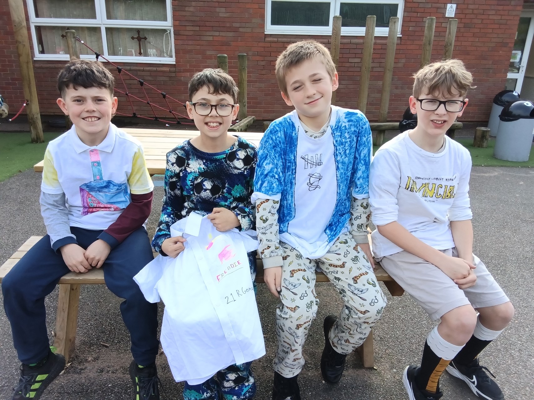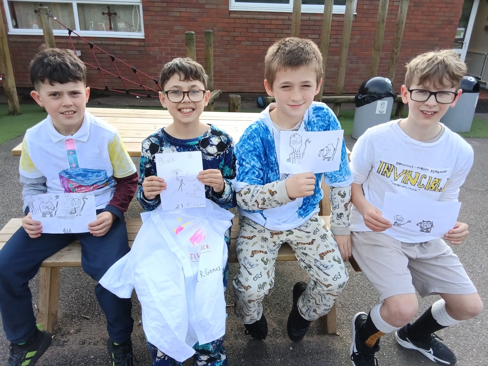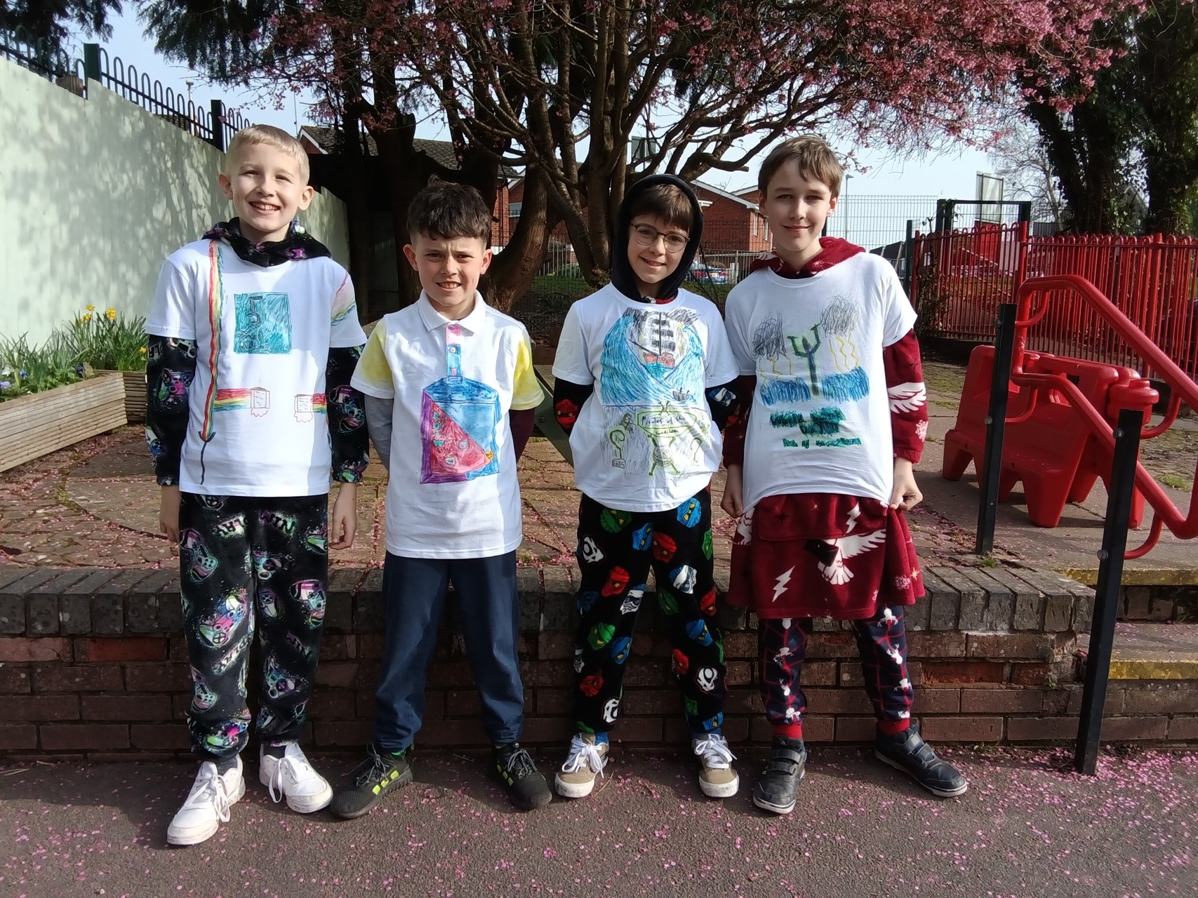 Yesterday we celebrated World Book Day which was organised by Mrs Tasker. The whole day was dedicated to the joy of reading and storytelling. Children and teachers came to school wearing their pyjamas, creating a cosy and exciting atmosphere for a day full of reading. One of the highlights was decorating T-shirts with fabric markers, where pupils designed shirts inspired by their favourite books and characters. Children also had the chance to buy Wonka Bars for the opportunity to find a golden ticket, which added an extra element of fun and anticipation. To make the day even more special, a cosy reading area was set up on the bank where children enjoyed a shared story together. It was wonderful to see so much enthusiasm for books and to celebrate how reading sparks imagination, creativity, and a lifelong love of stories.
