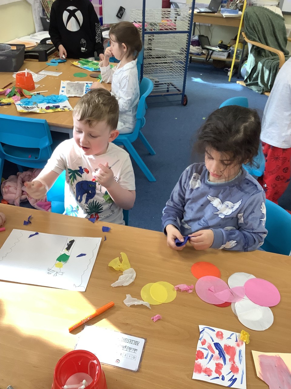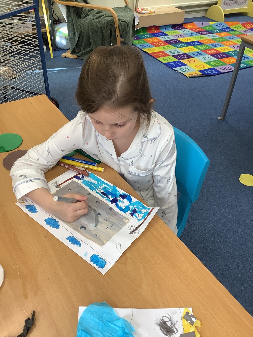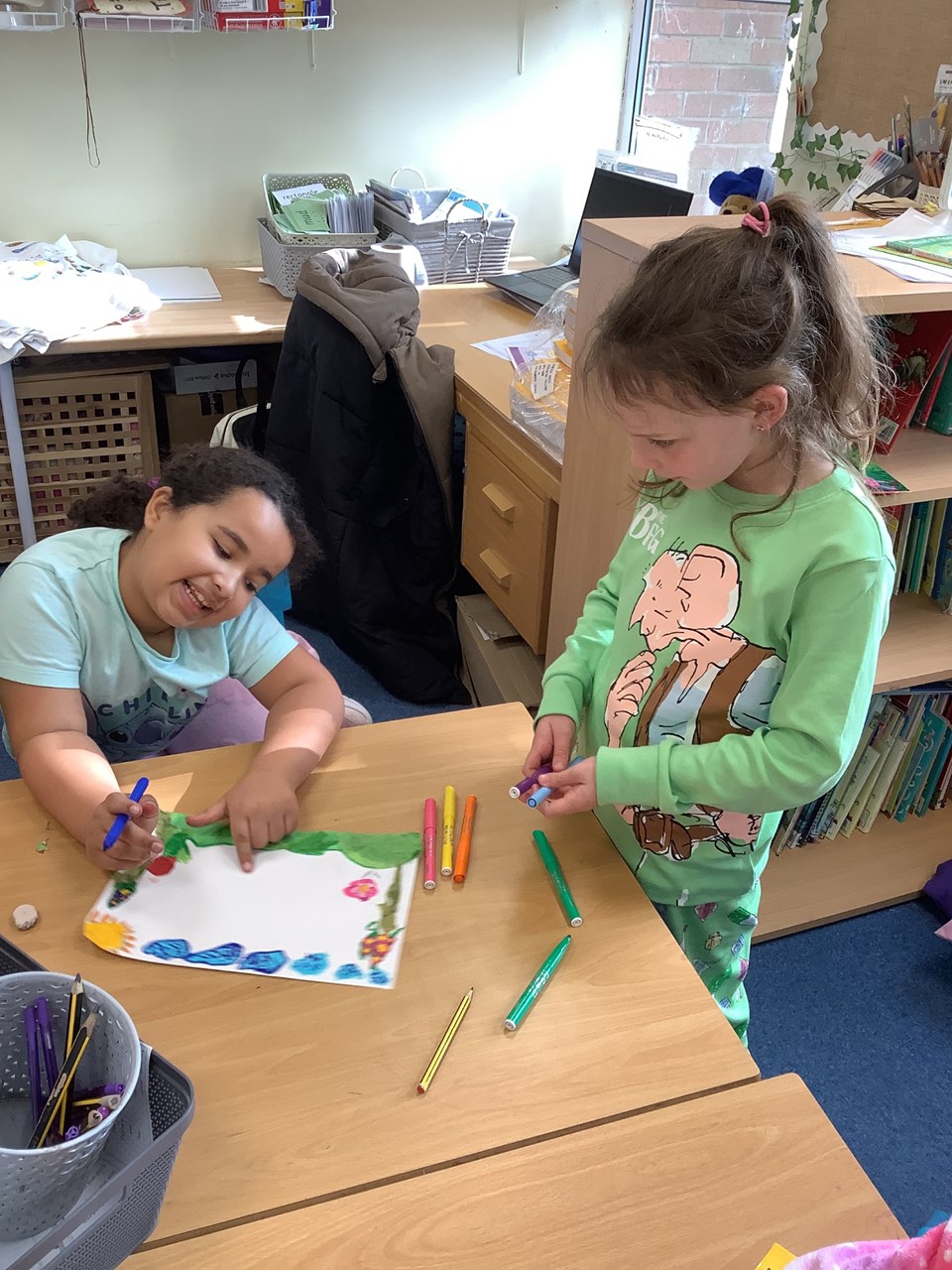 Yesterday we celebrated World Book Day which was organised by Mrs Tasker. The whole day was dedicated to the joy of reading and storytelling. Children and teachers came to school wearing their pyjamas, creating a cosy and exciting atmosphere for a day full of reading. One of the highlights was decorating T-shirts with fabric markers, where pupils designed shirts inspired by their favourite books and characters. Children also had the chance to buy Wonka Bars for the opportunity to find a golden ticket, which added an extra element of fun and anticipation. To make the day even more special, a cosy reading area was set up on the bank where children enjoyed a shared story together. It was wonderful to see so much enthusiasm for books and to celebrate how reading sparks imagination, creativity, and a lifelong love of stories.