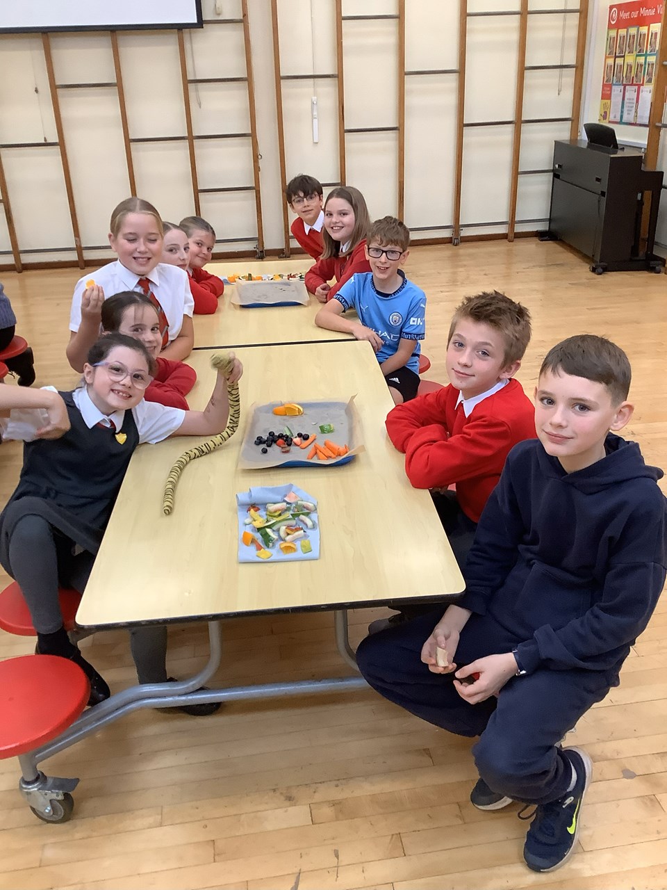 Year 6 have had a wonderful start to the new half term and started the week with a visit from Paige from our school catering team. Paige came to talk to the Year 6 children about making healthy choices in their food and drinks. The children explored about the recommended amount of sugar for children their age and then looked at how much sugar some snacks would contain – with some very surprising results! The children were then lucky enough to have a fruit and vegetable platter which they all very much enjoyed with many children trying a new fruit for the first time. Well done! The children have also written some amazing setting descriptions this week based on their current text, ‘Leila and the Blue Fox’. Miss McGowan challenged the children to use a range of adverbials, expanded noun phrases, figurative language and to really consider the language choices they make in order to be specific and descriptive, and it sounds like Year 6 have really worked hard and have definitely impressed Miss McGowan. Fractions have also been a focus this week with the children looking at finding equivalent fractions, finding the simplest form and comparing and ordering fractions. The children could see this week how having a secure tables knowledge with quick recall could help them in many other areas of maths – especially fractions! Thank you also to the Year 6 children who read so beautifully in Mass today. Well done!