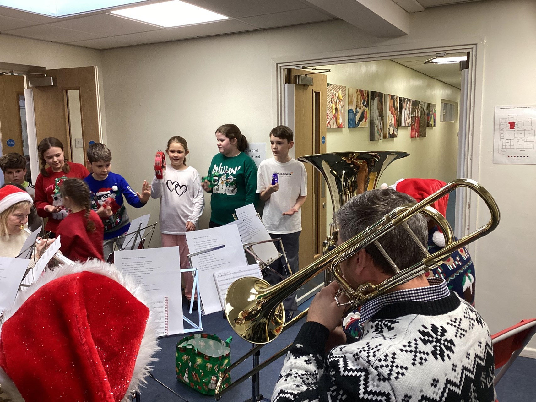 On Friday, this week, the children and staff had the pleasure of a visit from members of the Stourport Brass Band. The band played lots of Christmas tunes and helped to get us all in the festive mood. A big thank you to Mrs Foskett who organised this treat for us. One of the band members, Carly Goodman, is a former pupil of St Wulstan's. It was lovely to welcome her back to visit our school.